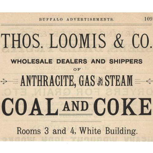 1886 BUFFALO COAL COKE GAS STEAM ANTHRACITE LOOMIS CO WHITE BUILDING MAIN ST
