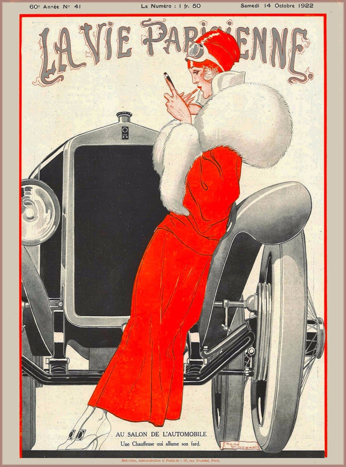 1922 La Vie Parisienne Girl Car French France Travel Advertisement Poster Print
