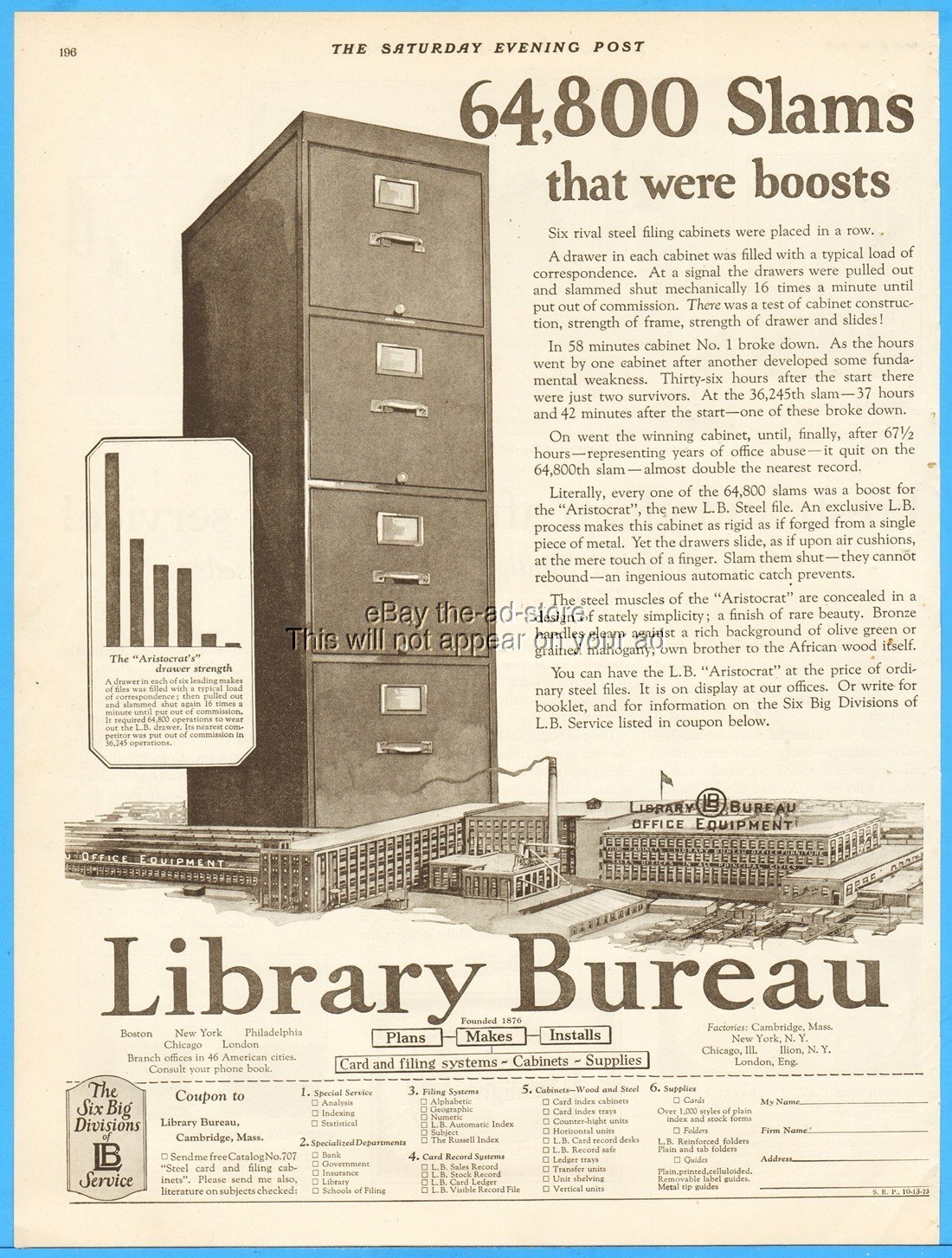 1923 Library Bureau Office Equipment Cambridge MA Steel File 64,800 Slams Ad