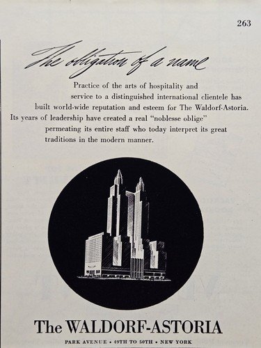 1944 The Waldorf-Astoria Print Ad – Park Avenue 49th to 50th Street New York