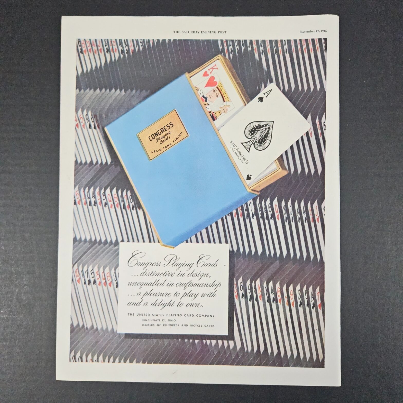 1945 Congress Playing Cards Cel-U-Tone Finish Vintage Print Ad Bicycle Bridge
