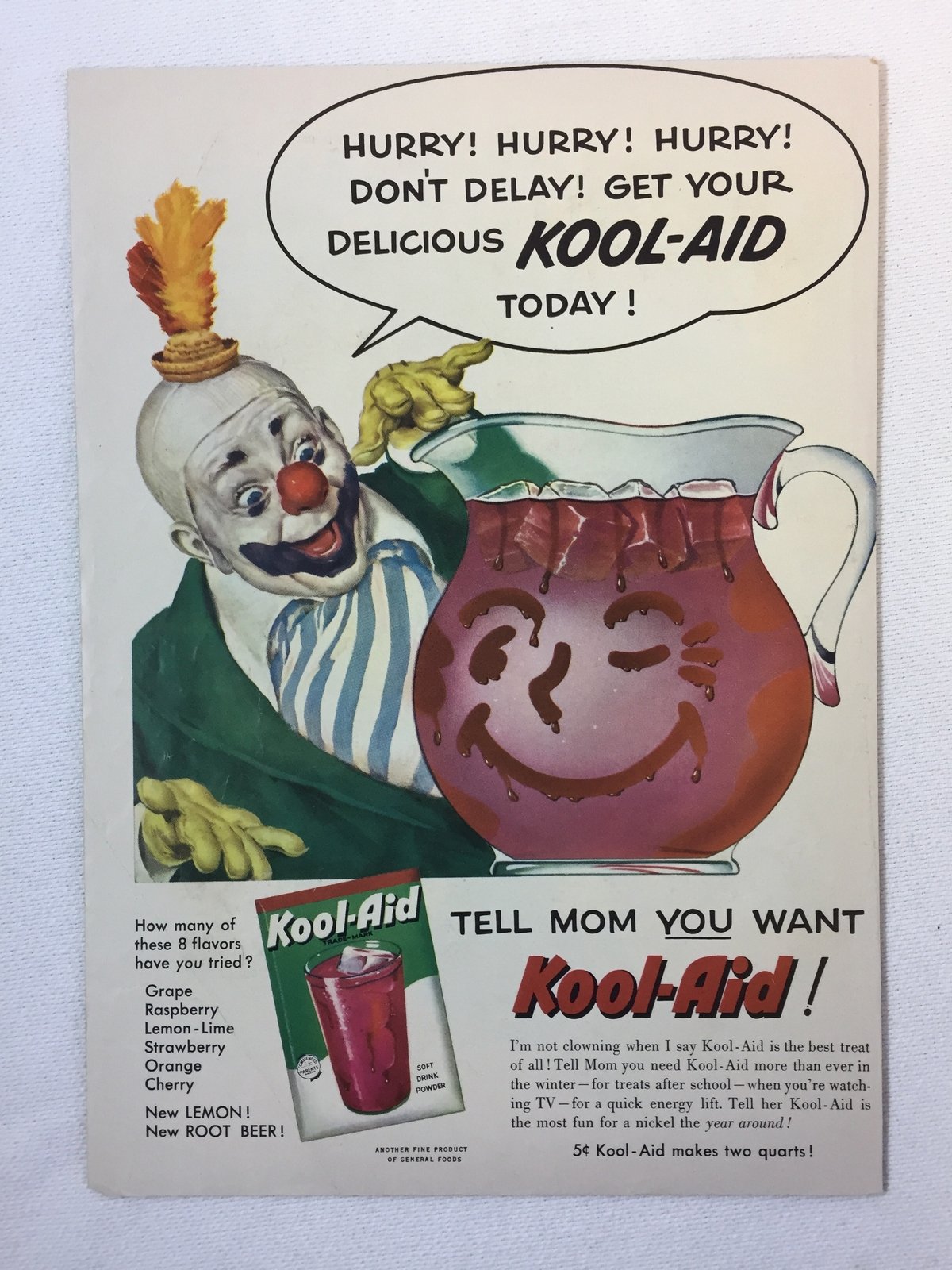 1955 KOOL-AID ad page ~ HURRY HURRY HURRY Circus Clown