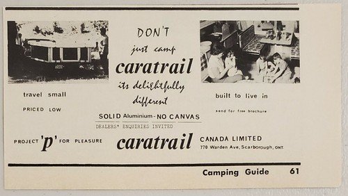 1965 Print Ad Caratrail Travel Trailer Solid Aluminum Scarborough,Ontario Canada