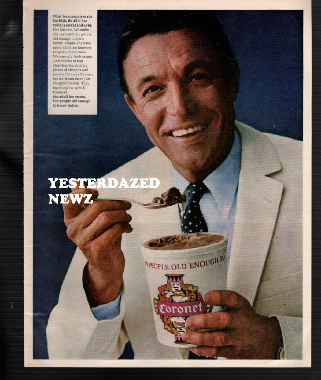 1967 Print Ad for Coronet Ice Cream “For people old enough to know better”