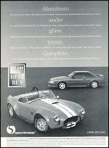 1997 Factory Five Racing Cobra Original Advertisement Print Art Car Ad J762A