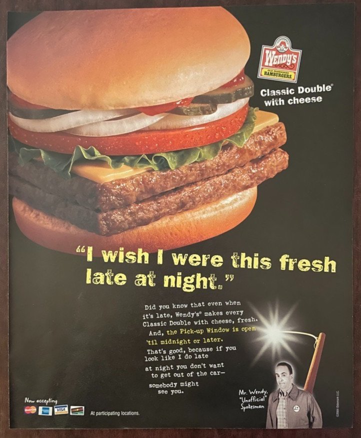 2004 Wendy’s Hamburger Classic Double With Cheese Print Ad