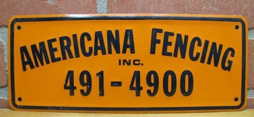 AMERICANA FENCING Sign embossed aluminum advertising 491-4900