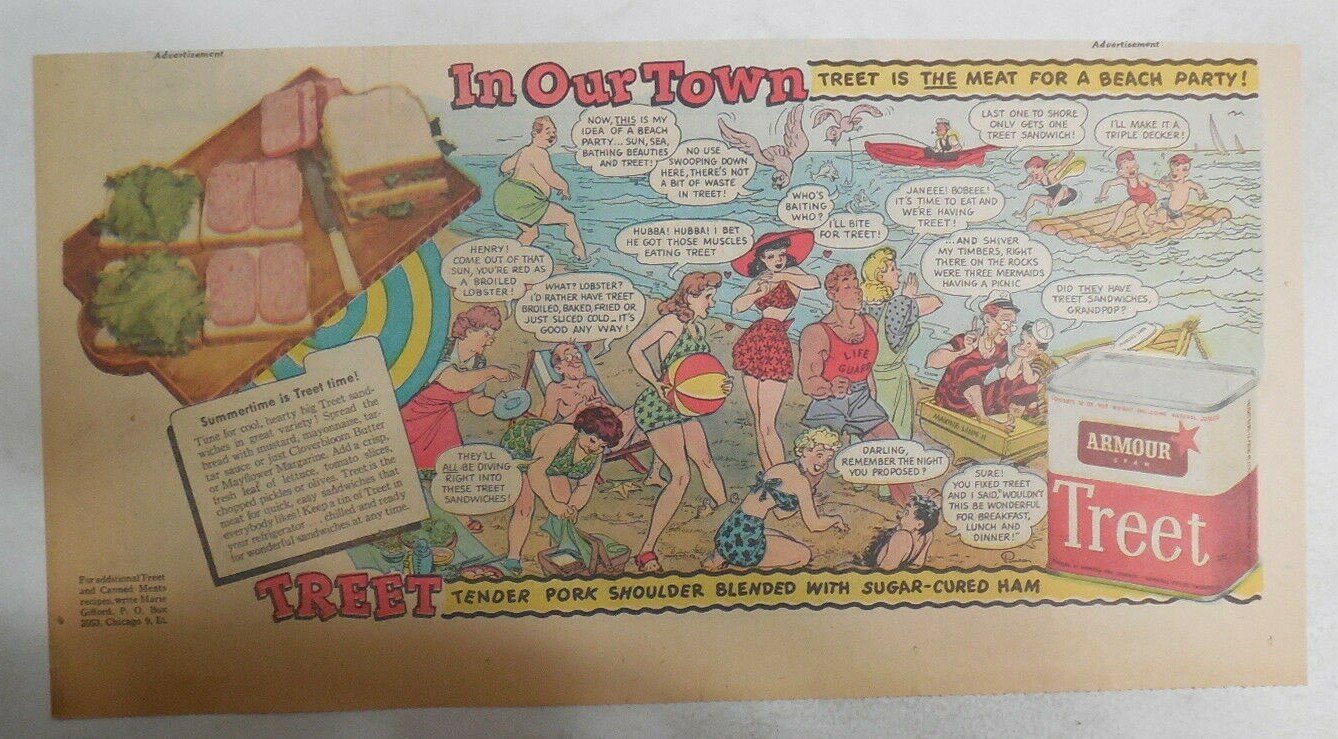 Armour’s Treat Ad: Treet for Beach Party ! from 1945 Size: 7.5 x 15 inches