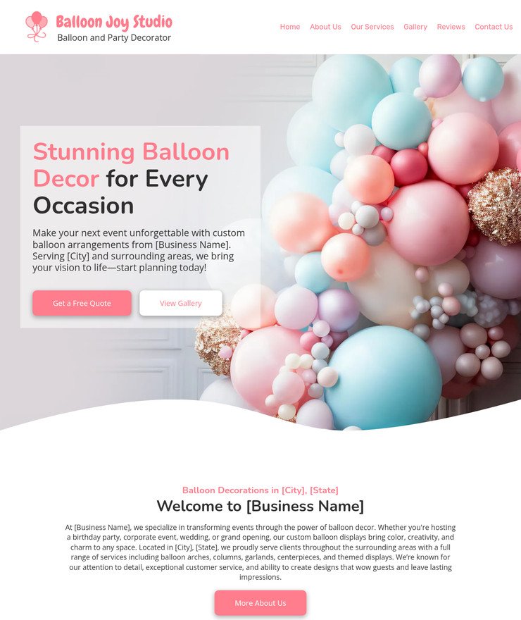 Balloon Decor Customized Business Website *SEE FULL DESCRIPTION*
