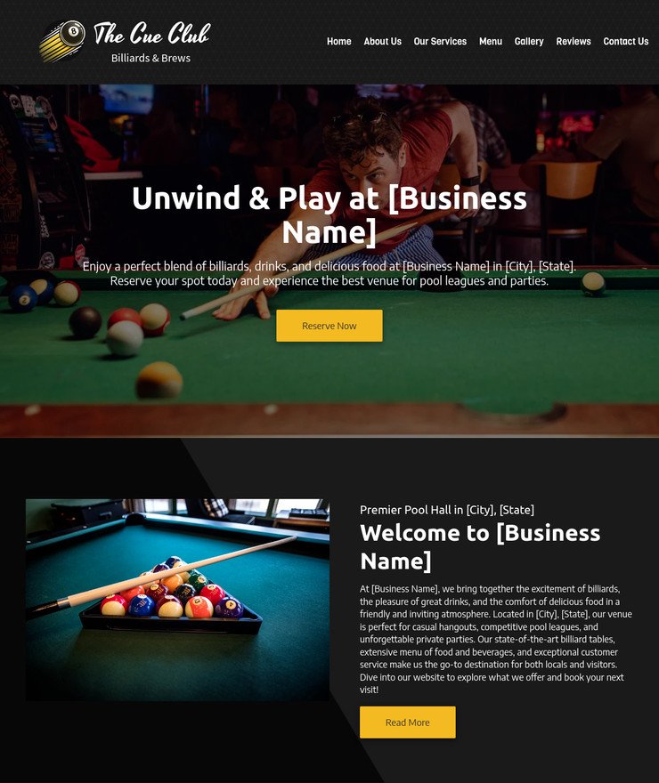 Billiards / Pool Hall Customized Business Website *SEE FULL DESCRIPTION*