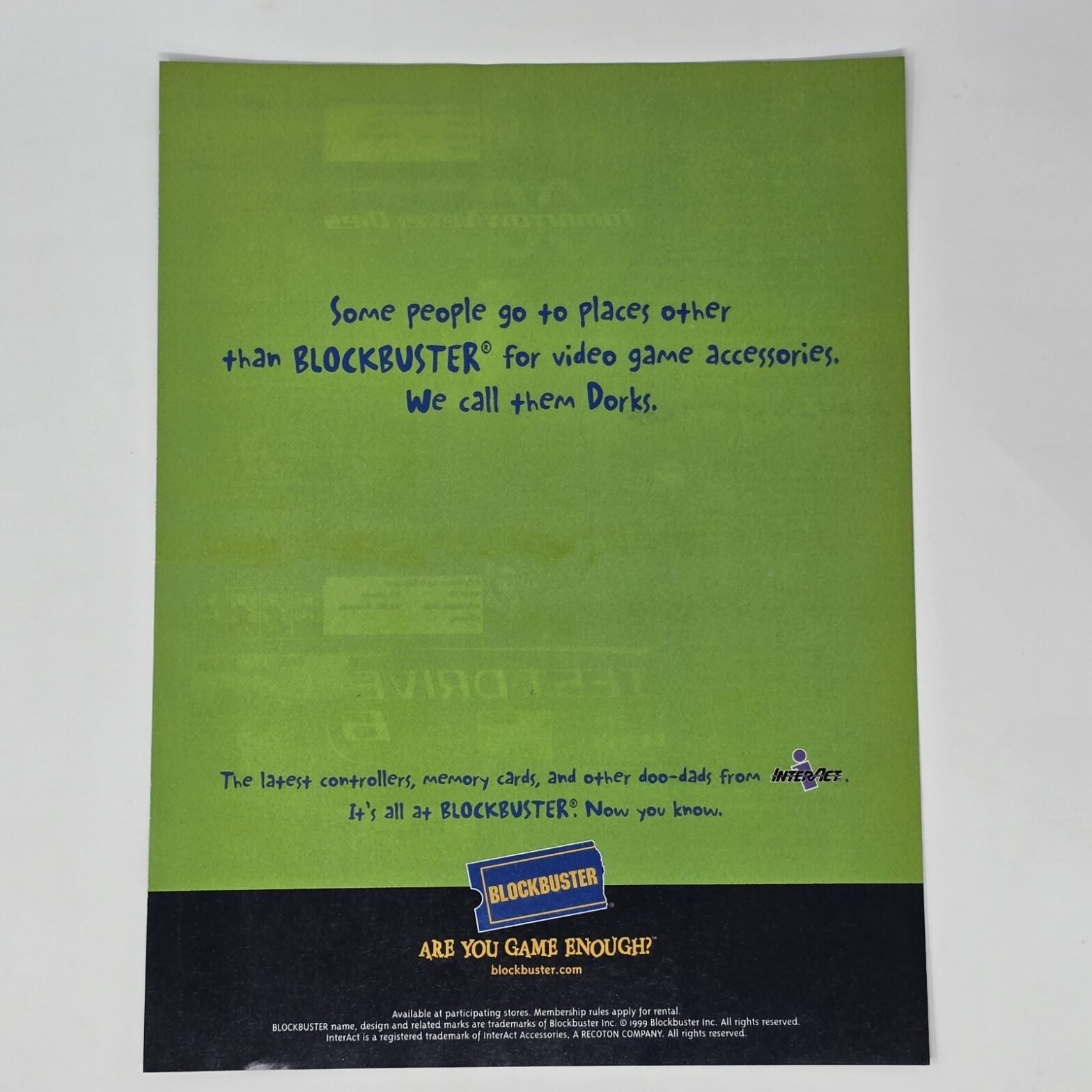 Blockbuster Are You Game Enough? Dorks Print Ad/Poster Official Promo Art