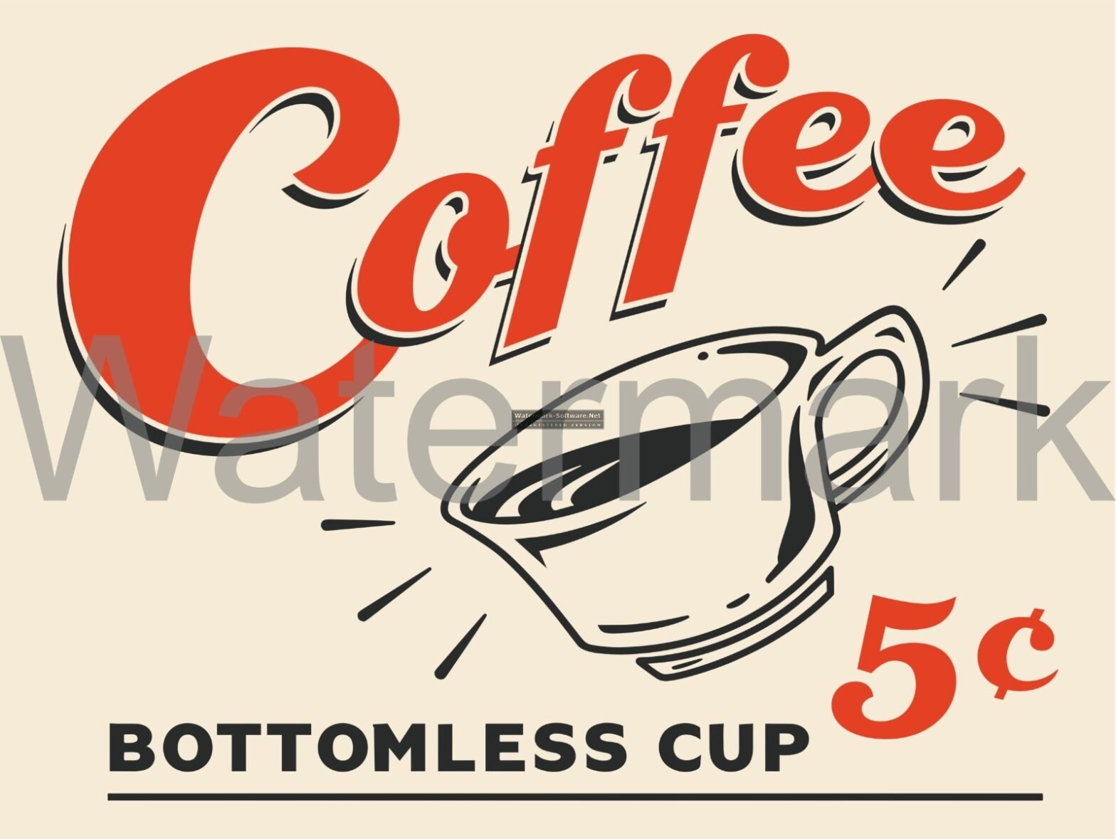 Coffee Bottomless Cup 5 Cents Metal Sign 9″ x 12″ or 12″ x 16″