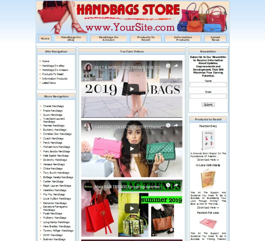 HANDBAGS STORE WEBSITE FOR SALE. AMAZON STORE, ADSENSE INCOME STREAMS