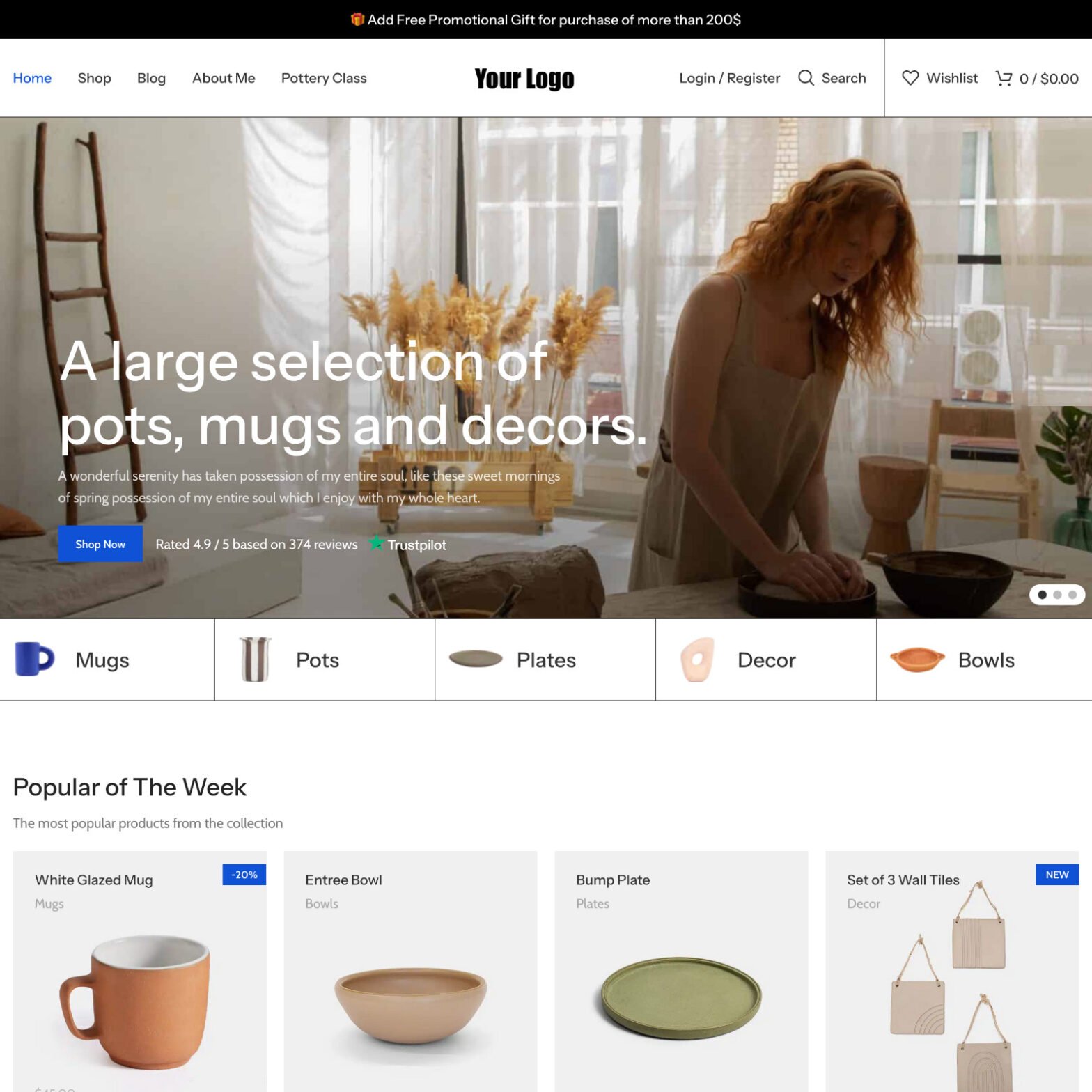 Handmade Pottery Website Design with Free VPS Web Hosting and Installation