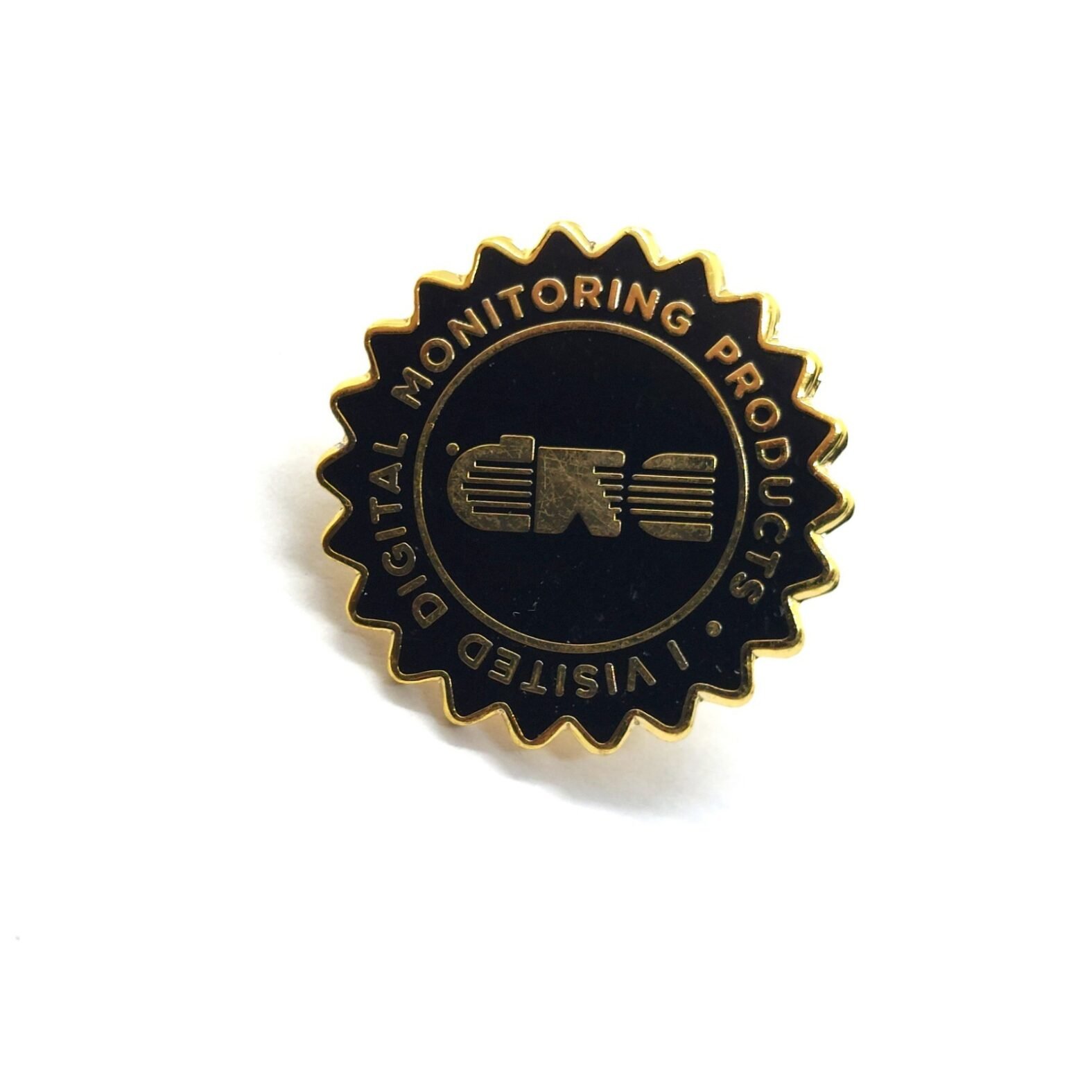 I Visited Digital Monitoring Products Lapel Pin Black Gold Gear Shaped Round