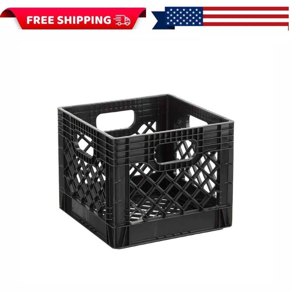 Juggernaut Storage 16QT Heavy-Duty Plastic Square Milk Crate Black for Any Room