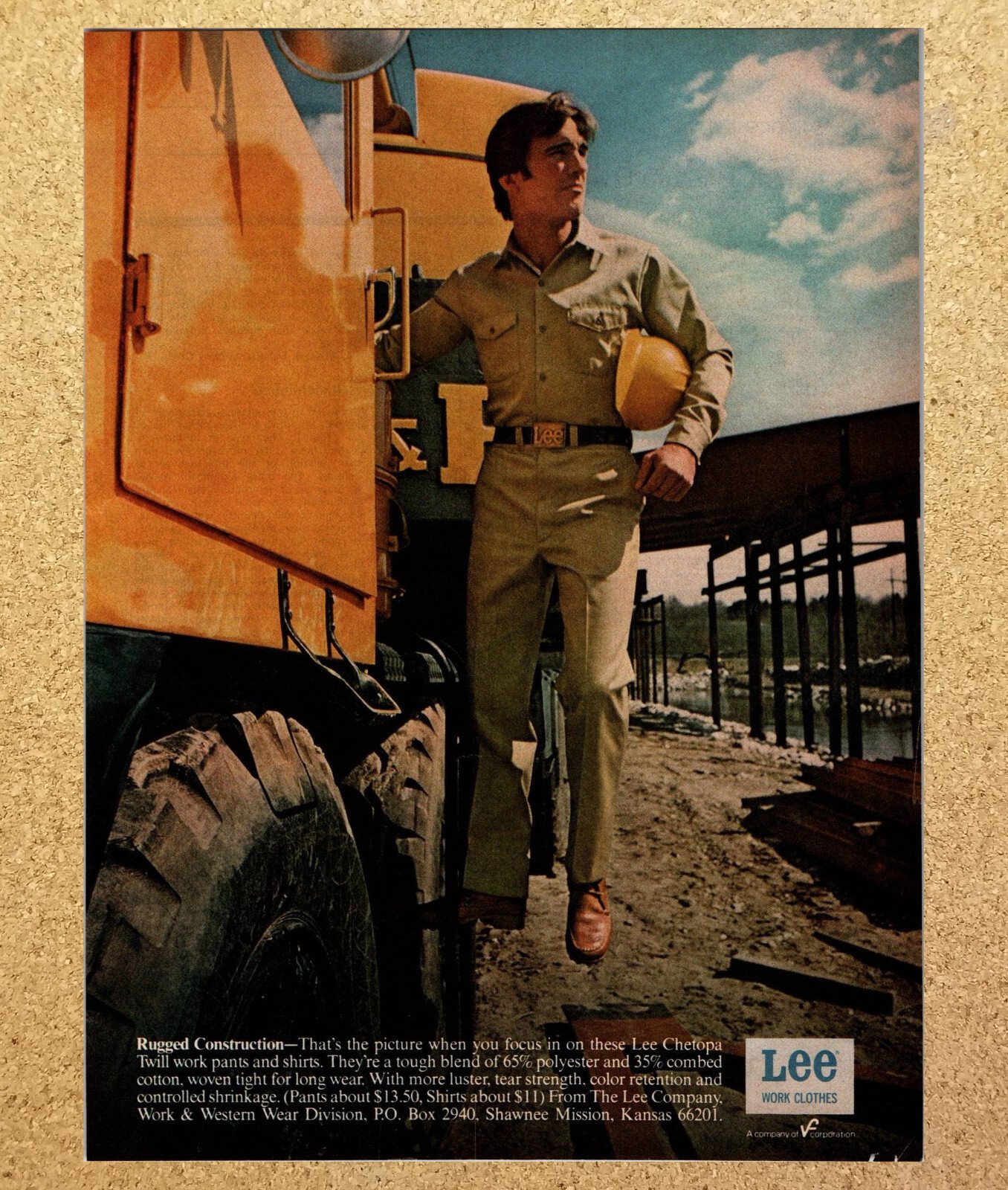 Lee Work Clothes Rugged Constuction Site Worker Print Ad Poster Promo Art 1970s