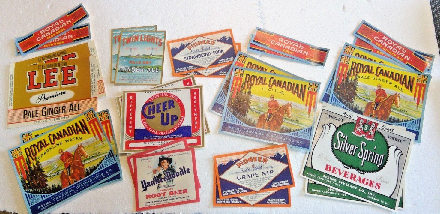 LOT VINTAGE Soda Paper Label Advertising Cola Root Beer, Ginger, Grape More 26
