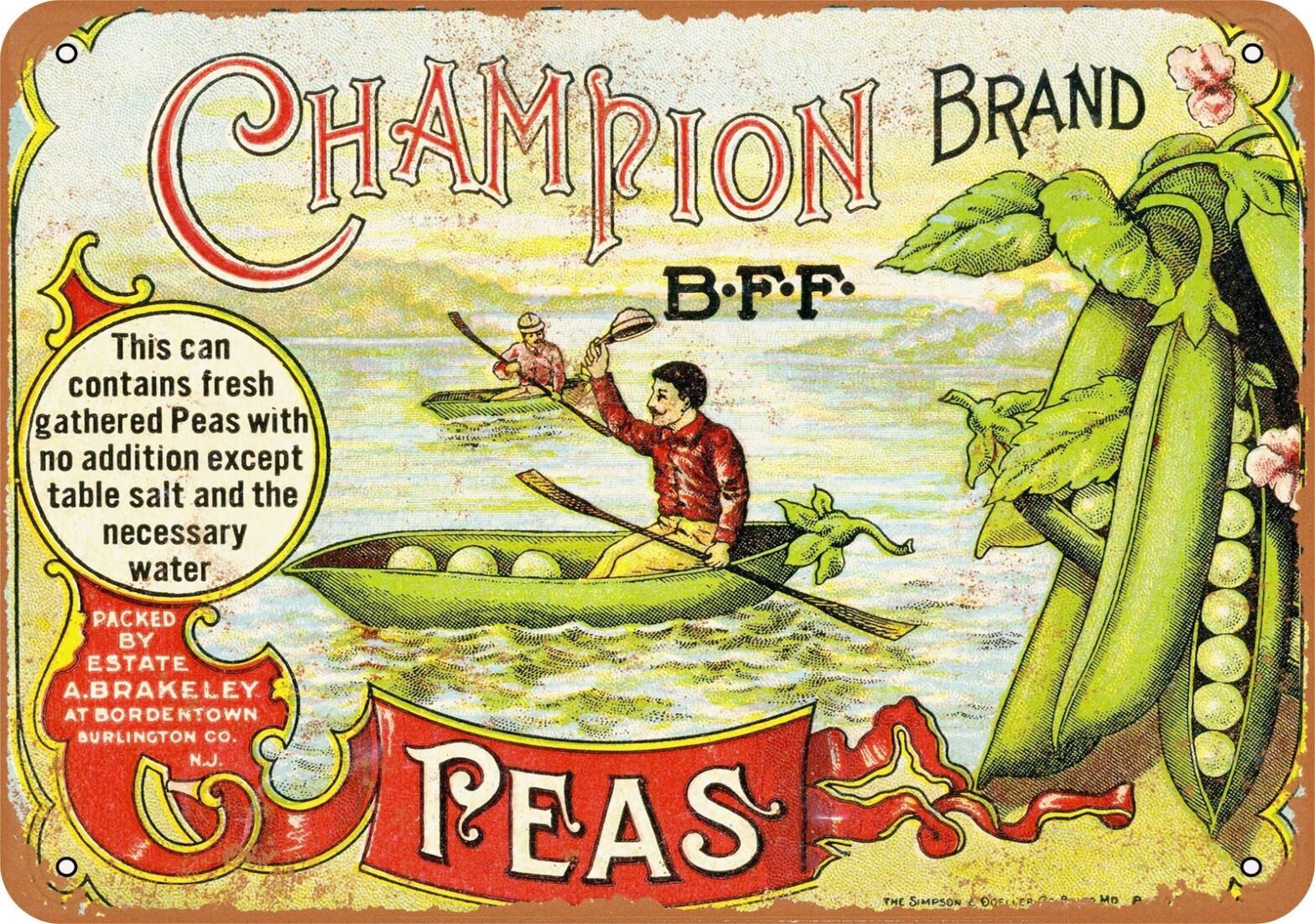 METAL SIGN – Champion Brand Peas – Vintage Look Reproduction