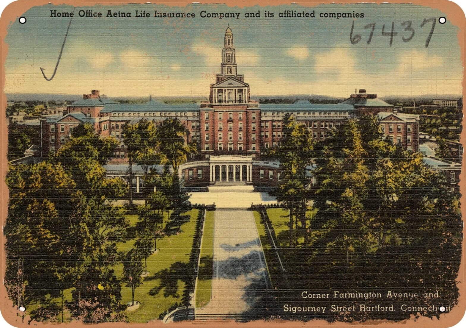 METAL SIGN – Connecticut Postcard – Home office Aetna Life Insurance Company an