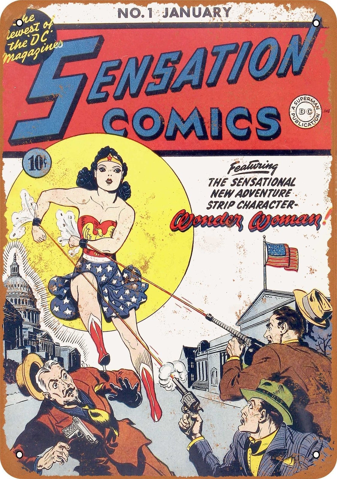 METAL SIGN – Sensation Comics #1 – Vintage Look Reproduction