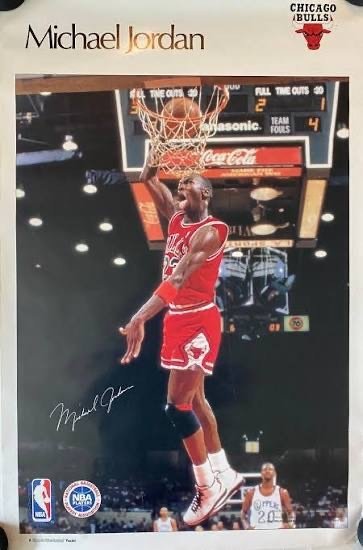 Michael Jordan Poster Chicago Bulls NBA Dunking Signed 12x8in Metal Sign