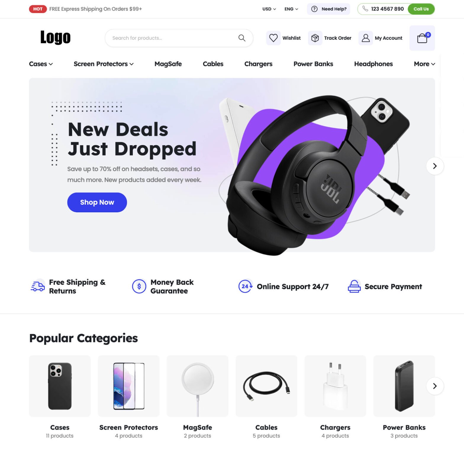 📱 Mobile Accessories Website Design for Sale with Free VPS Web Hosting