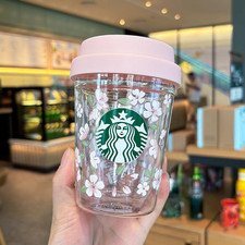 NEW Starbucks Pink Sakura Double-wall Glass Cup 296ml Coffee Cup Milk Cups Gifts