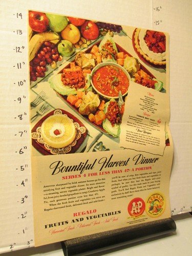 newspaper ad 1940s A&P Regalo fruit vegetables meat sauce recipe NYSN