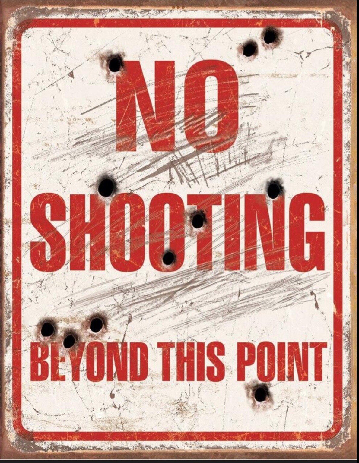 No Shooting Beyond This Point on a 12.5”x 16” Tin Sign.