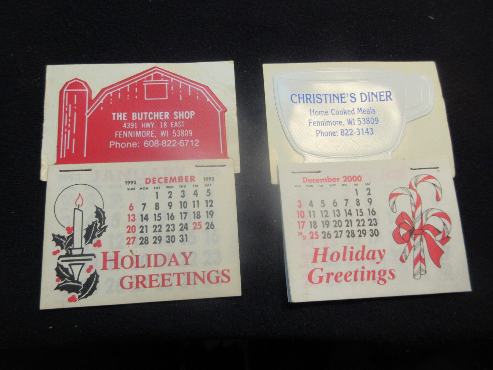 Pair 1992 2000 Butcher Shop / Christines Diner Car Calendars Fennimore Wisconsin