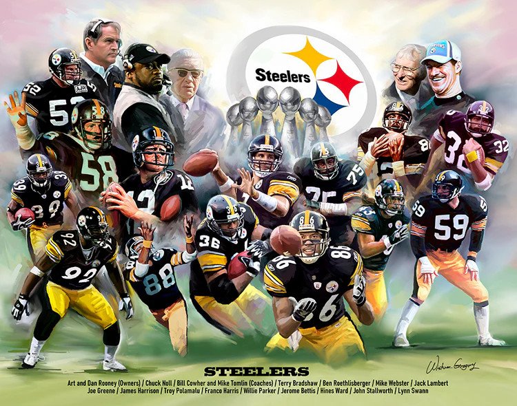 PITTSBURGH STEELERS “18 LEGENDS” ART COLLAGE METAL SIGN 12X8IN