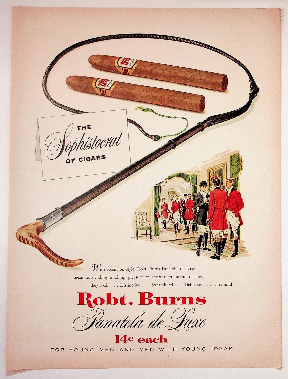 Robt. Burns Panatela de Luxe Cigars Vintage Magazine Ad Sophistocrat 1940s