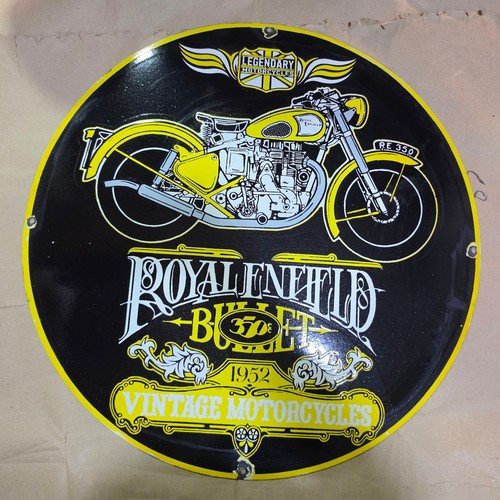 ROYAL ENFIELD MOTORCYCLES PORCELAIN ENAMEL SIGN 29 X 29 INCHES