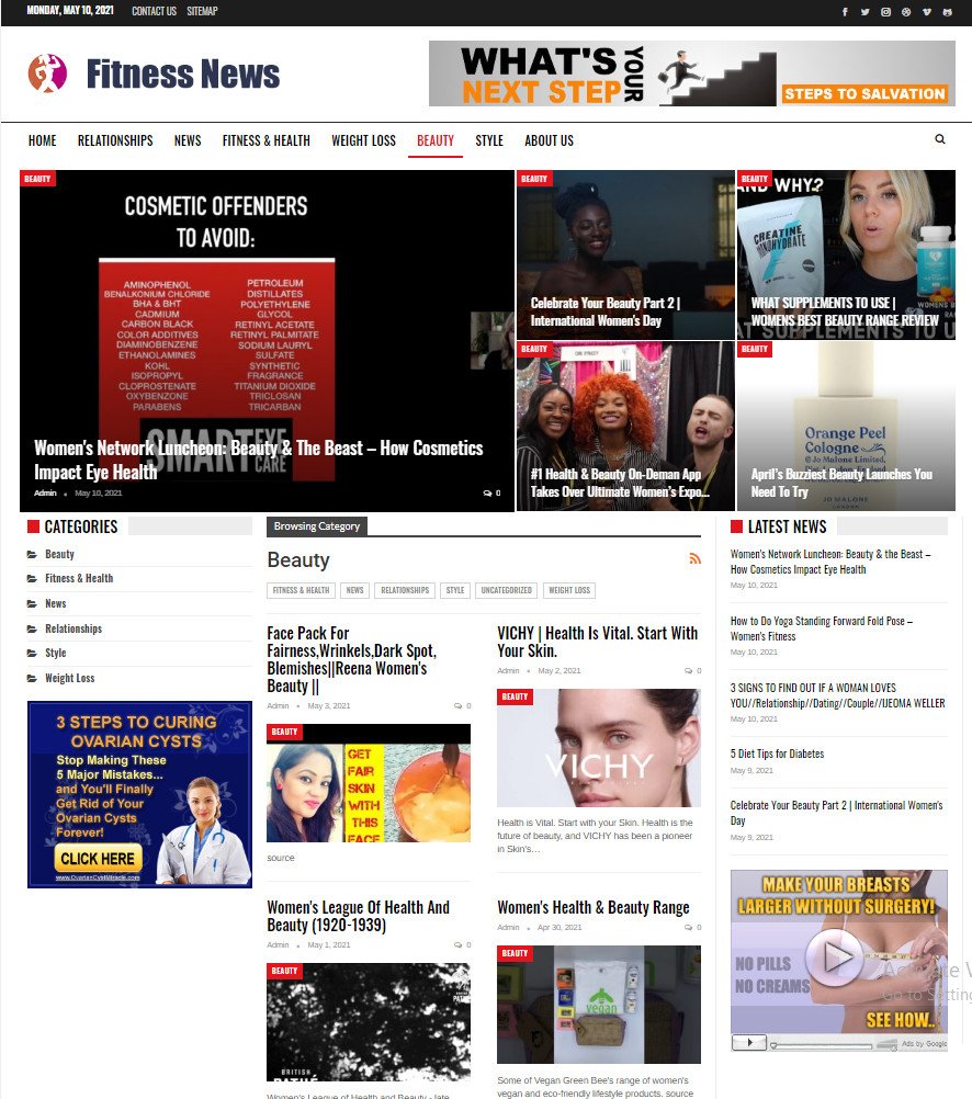 Self Updated Health / fitness / News website Free hosting / Installation