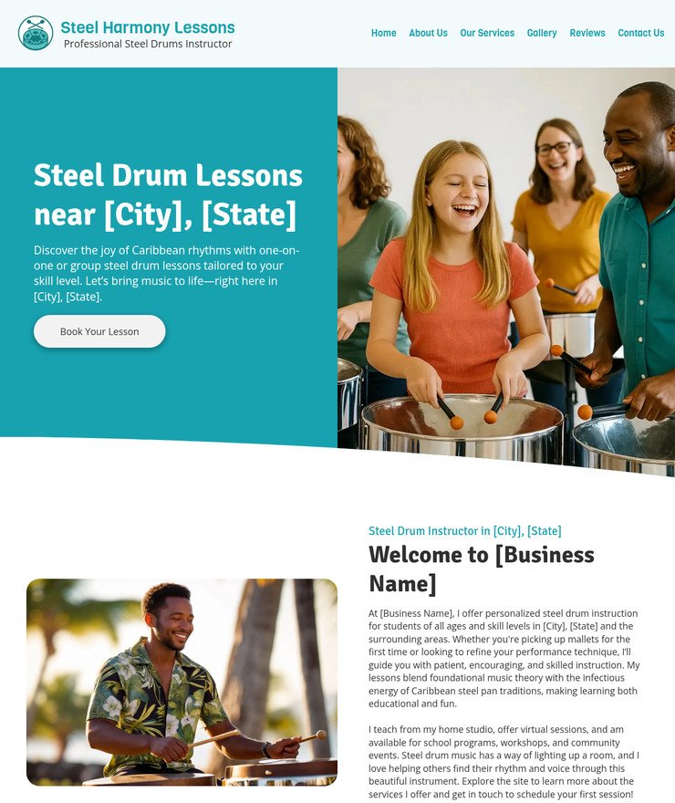 Steel Drum Lessons Customized Business Website *SEE FULL DESCRIPTION*