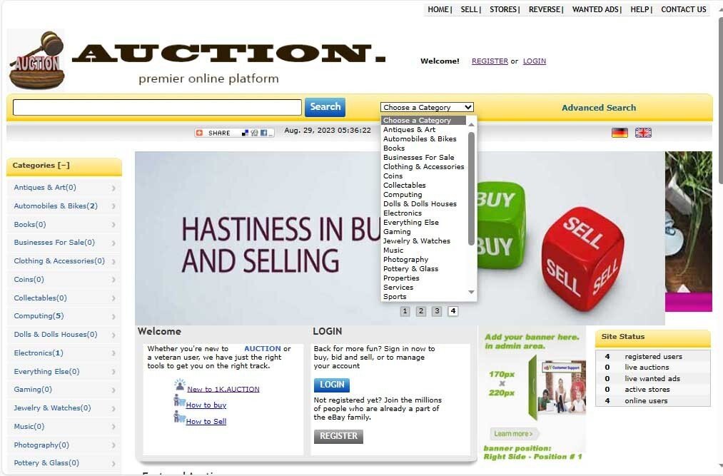 Top Auction / buy it now Style Multi-vendor Website Free Hosting / setup