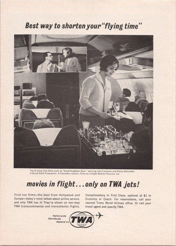 TWA Vintage Magazine Ad In-Flight Movies Jack Lemmon 1960s