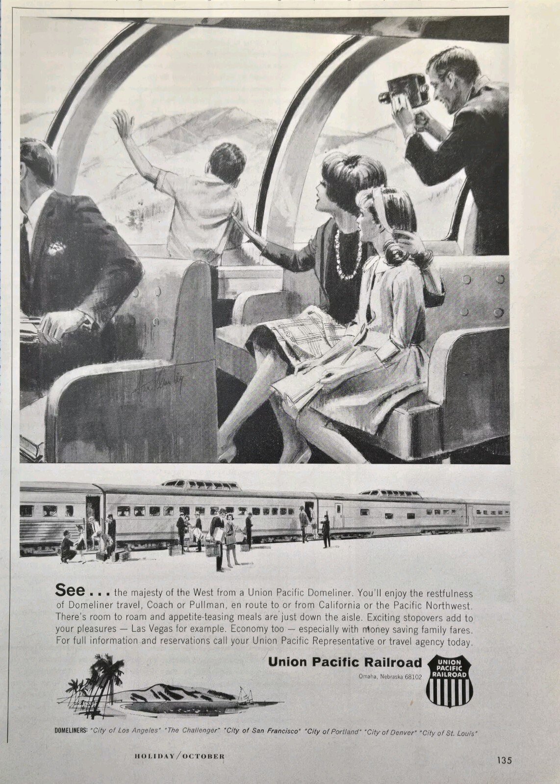Union Pacific Railroad Domeliners Family Travels Dad Films Vintage Print Ad 1965