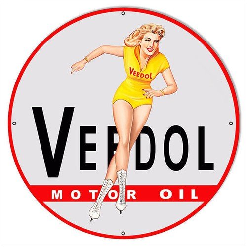 VEEDOL MOTOR OIL PINUP GIRL 30″ ROUND HEAVY DUTY USA MADE METAL GAS ADV SIGN