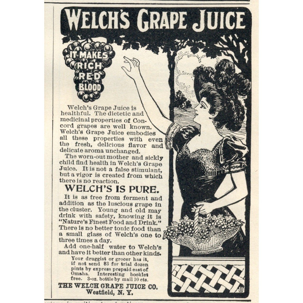 Vintage 1903 Welch’s Grape Juice Advertisement Print – Westfield, NY