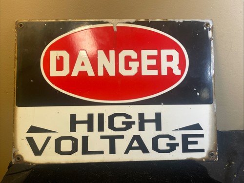 Vintage 1950’s Enamel/Porcelain DANGER HIGH VOLTAGE Original Sign 10″X 14″