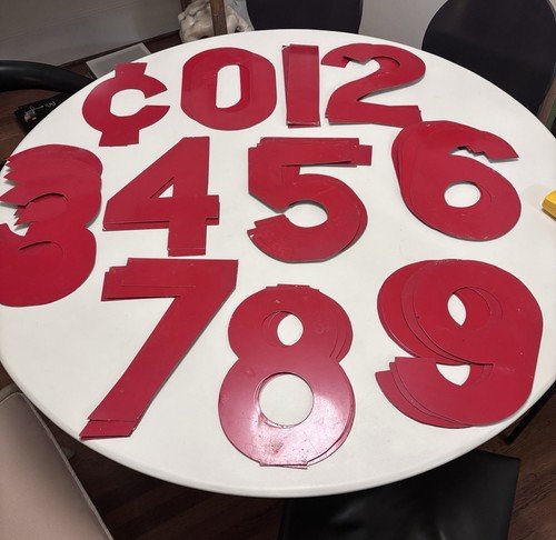 Vintage 1960s 14” Red Aluminum Sign Numbers Marquee