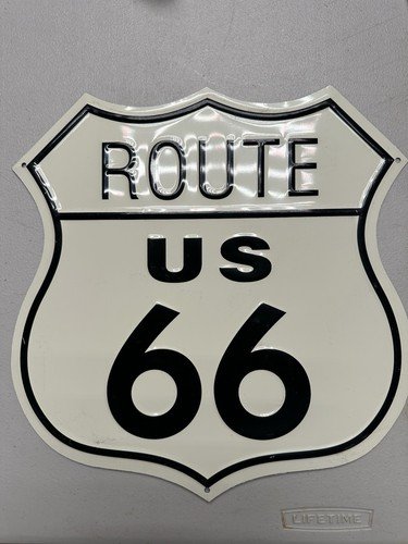 VINTAGE BUZ’S US ROUTE 66 PORCELAIN SIGN SKULL METAL HIGHWAY GAS STATION OIL