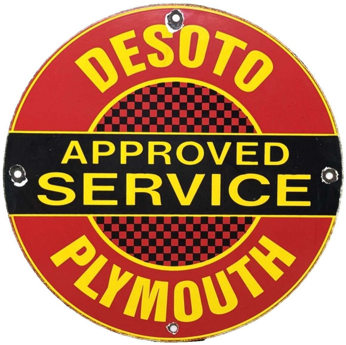 VINTAGE DESOTO PLYMOUTH PORCELAIN DEALERSHIP SIGN GAS STATION SALES SERVICE OIL