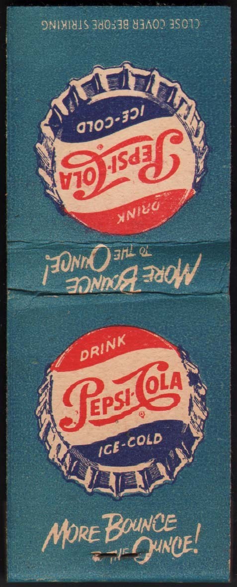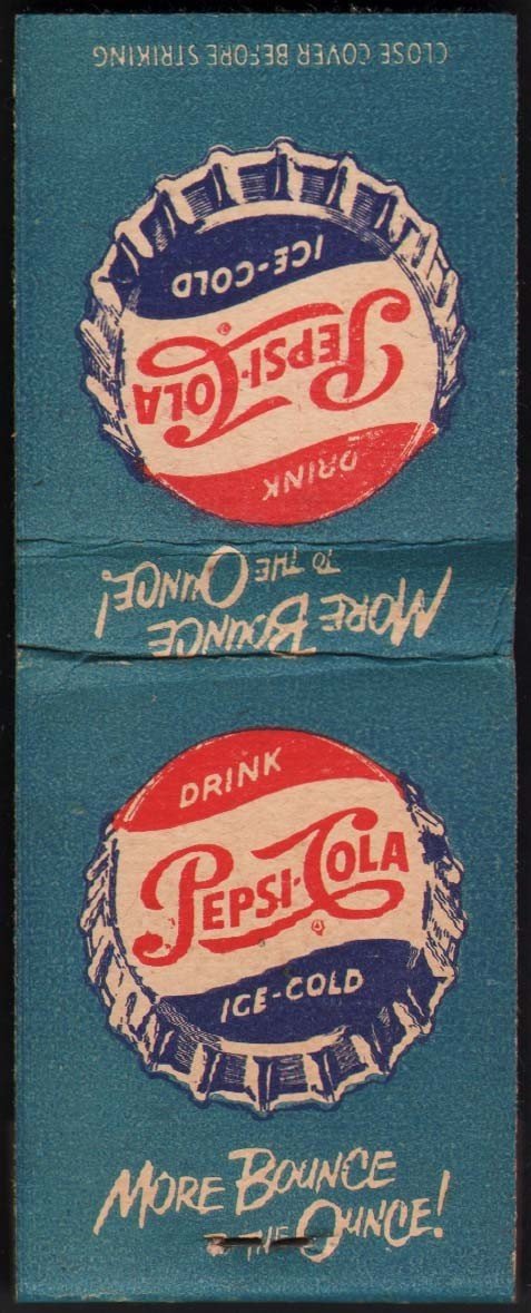 Vintage full matchbook PEPSI COLA More Bounce to the Ounce bottle cap pictured