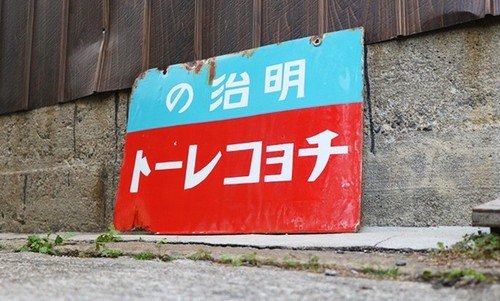 Vintage Meiji Chocolate Ribbon Caramel Double-Sided Enamel Sign Japan