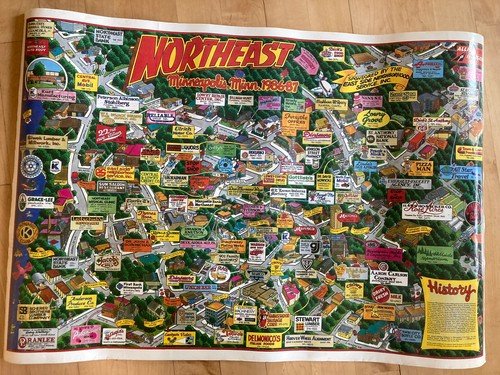 Vintage Northeast Minneapolis Minnesota MN Map Poster 1986-87 Business Store