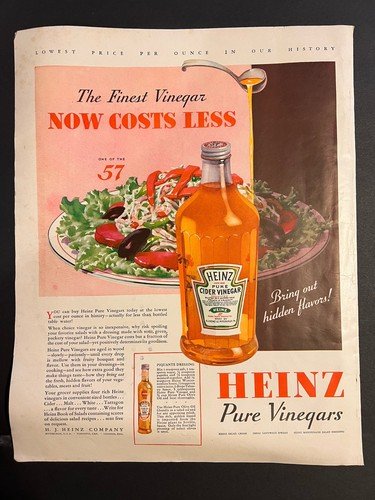 Vtg 1930s AD-Heinz Pur Vinegar-Bring Out Hidden Flavors!-Malt Shop Cover on Back