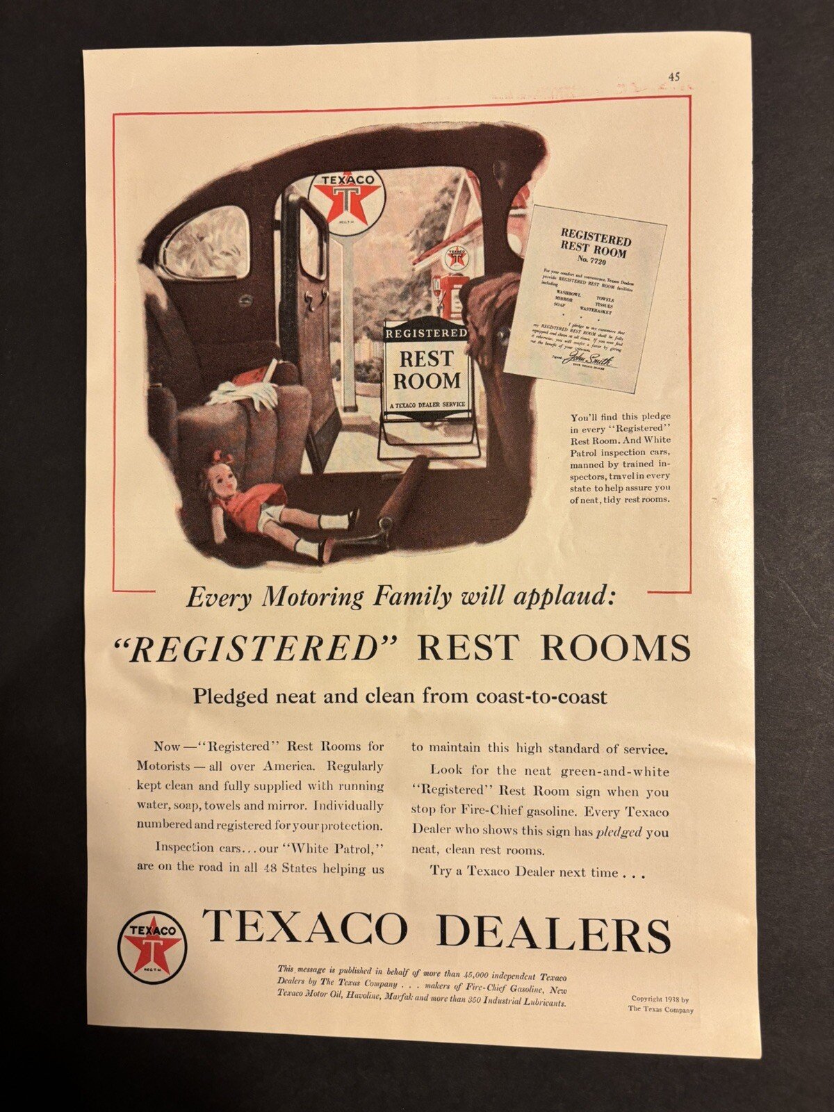 Vtg 1930s AD Texaco Dealers Registered Restrooms, Pledged Neat and Clean!